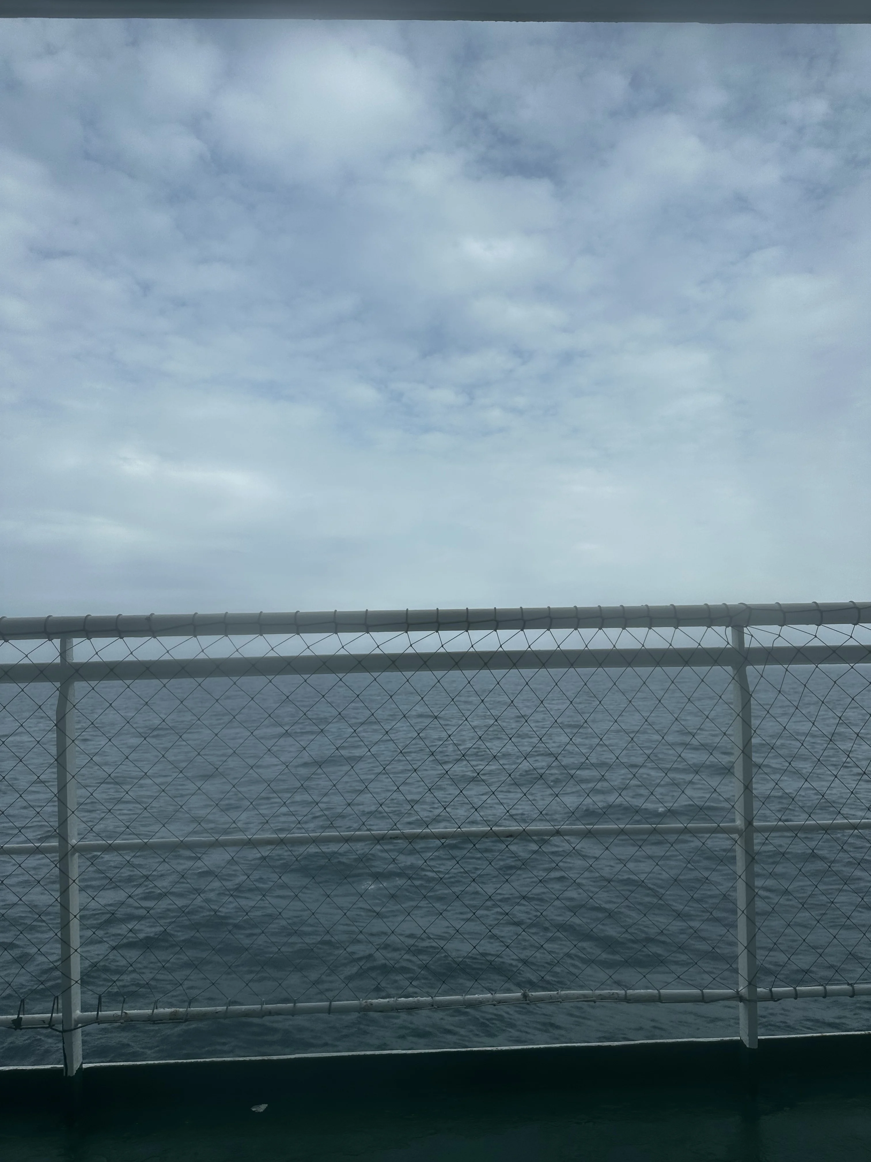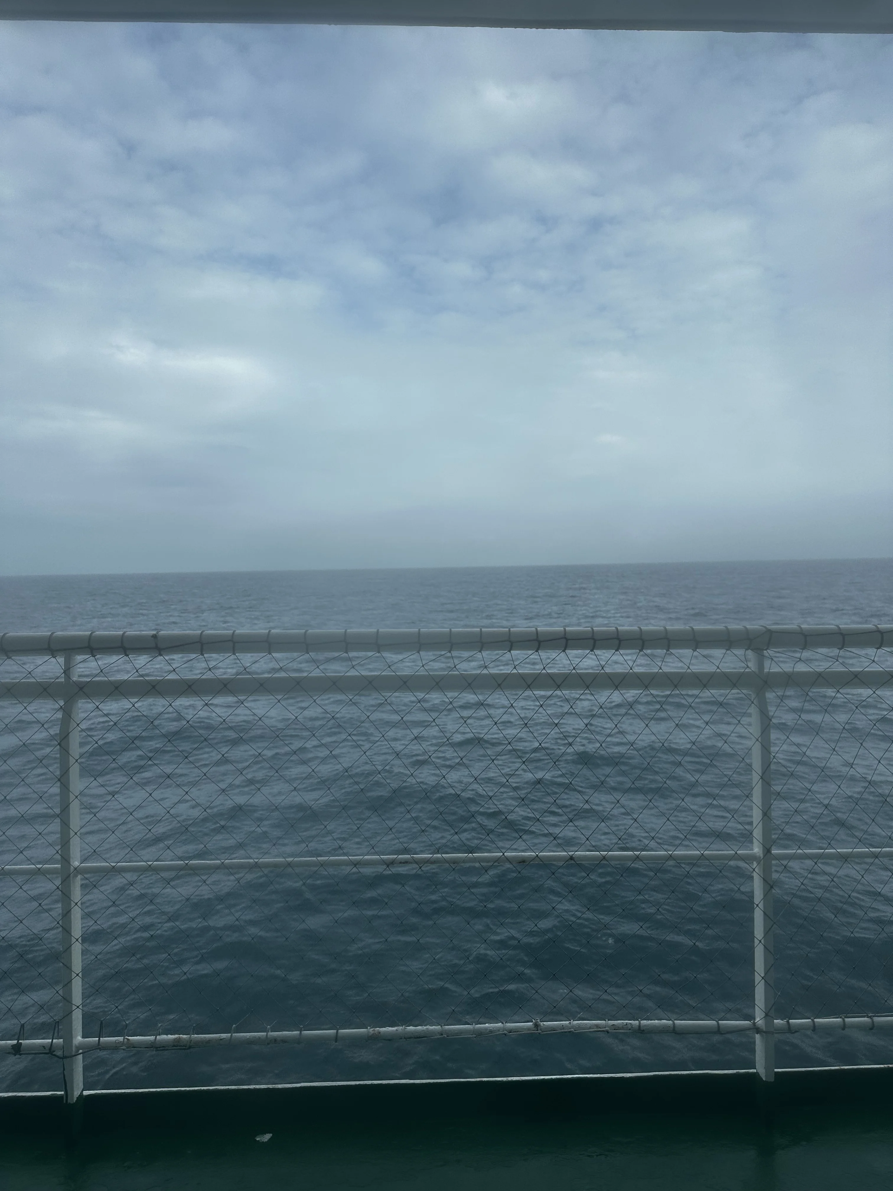 I did eventually come to enjoy the captain’s messages and his sincere and calm way of giving us difficult news but when I woke at 5.30am to the noise of things falling off shelves, I hated him and his tiny ship. (By the way, when travelling by ferry, never put anything on shelves when the captain says the weather might be stormy.) My water bottle was rolling around on the floor - more about that later and our toothpaste was under the bad but I didn’t know about any of these things until later because I could not lift my head off the pillow without feeling nauseas. (Note: the word sea is hidden in nauseas for a reason.) I lay back down repeating a meditation mantra I had heard was good but never tried… until now, when death seemed imminent.