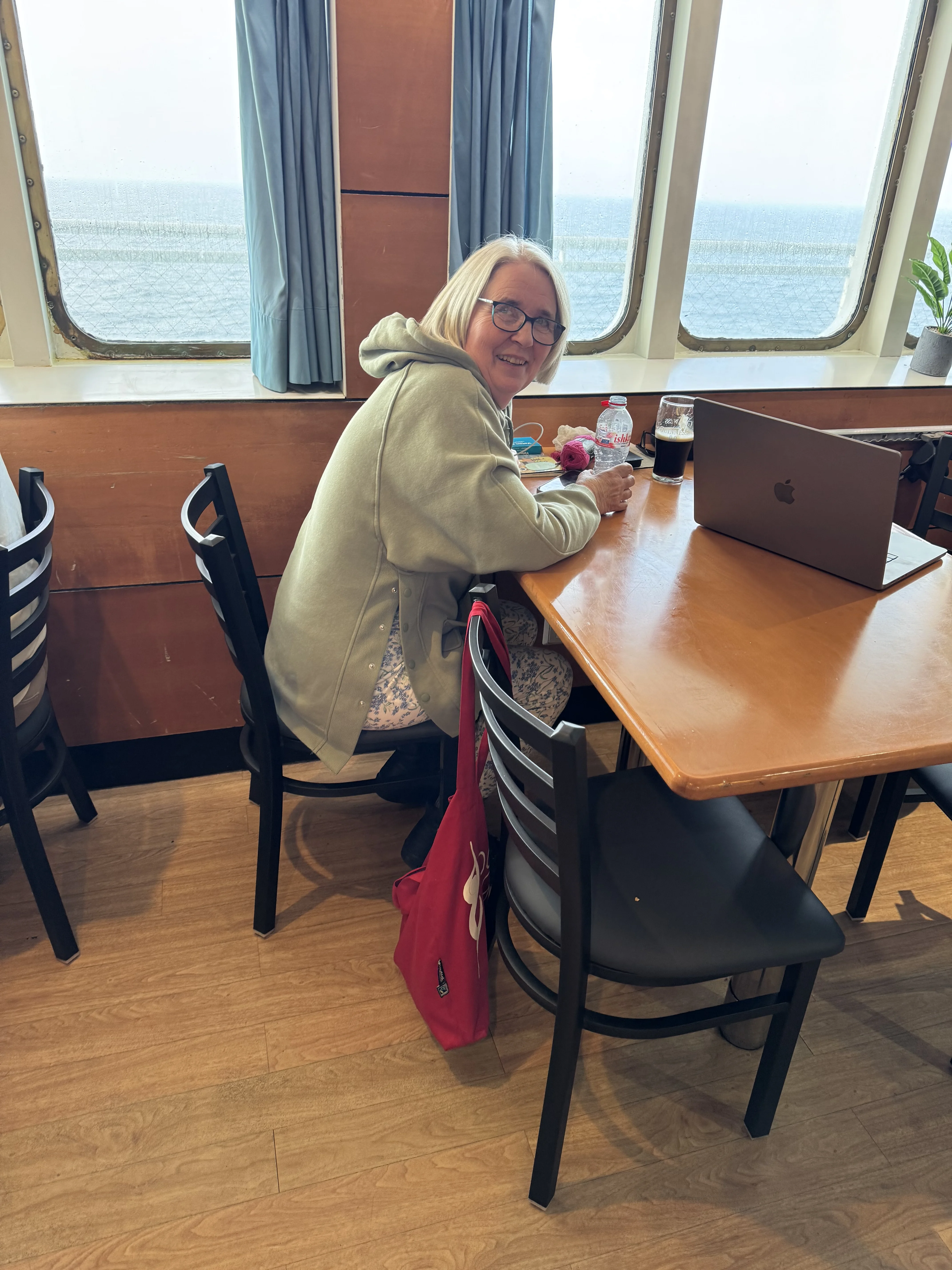 Denis has a new idea. Great, because I can’t think… I will go off and get my breakfast and bring you tea and biscuits or maybe porridge, afterwards? No, no, don’t mention food. I come up with an idea. A few more looks at the horizon, then I’ll close my eyes and imagine it while you bring me back to the room. I want to lie down flat in the dark. No food. No mention of food! We do that - of course I don’t trust him enough to keep my eyes closed but I do make it to my bunk while he goes for breakfast. Yes, he has the full Irish! I asked him about it only when we were on solid ground because I couldn’t bear to hear about it before then. It must be great for him to be so insensitive (that’s the opposite to sensitive like me, right?)